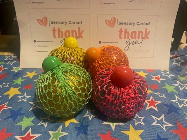 Fun, squishy and sensory the Mesh Ball L/UP Glitter is a tactile sensation to any young child's game play. Perfect for outside play. Comes in an assortment of 4 colours. When squeezed the ball will burst through the netting for tactile fun. Ideal for pocket money purchases.