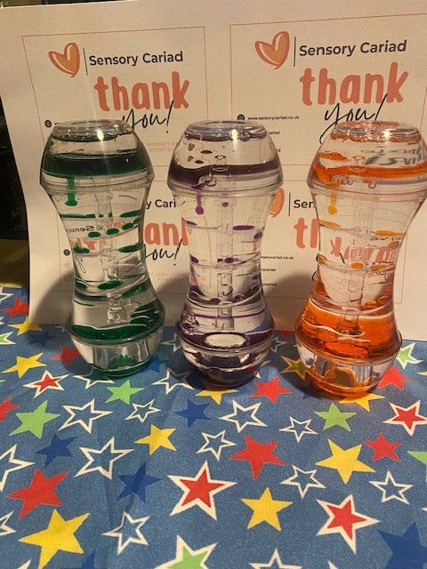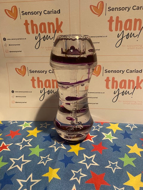 You simply turn them upside down and watch the two differently coloured bubbles simultaneously walk down the staircase to the bottom of the tube. . Please note these timers are for sensory calming and not for accurate time management. The action of the liquid showers can stimulate visual learning with regards to colours and the passing of time. This sensory activity is praised as a fun and stimulating early year resource for younger children.